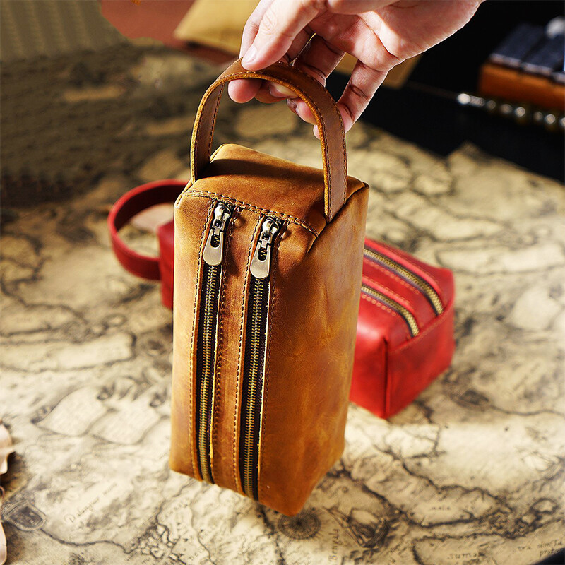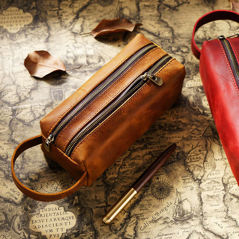 Genuine Leather Pen Pouch Holder Pencil Bag Pen Case Office School Students Supplies