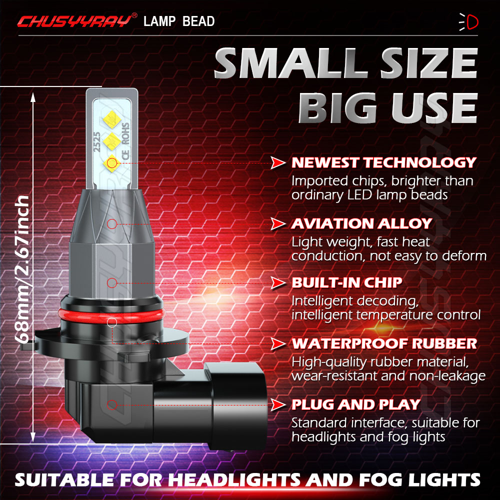 Built with smaller size than the common LEDs in the market without building an external driver, directly plug into the factory housing.