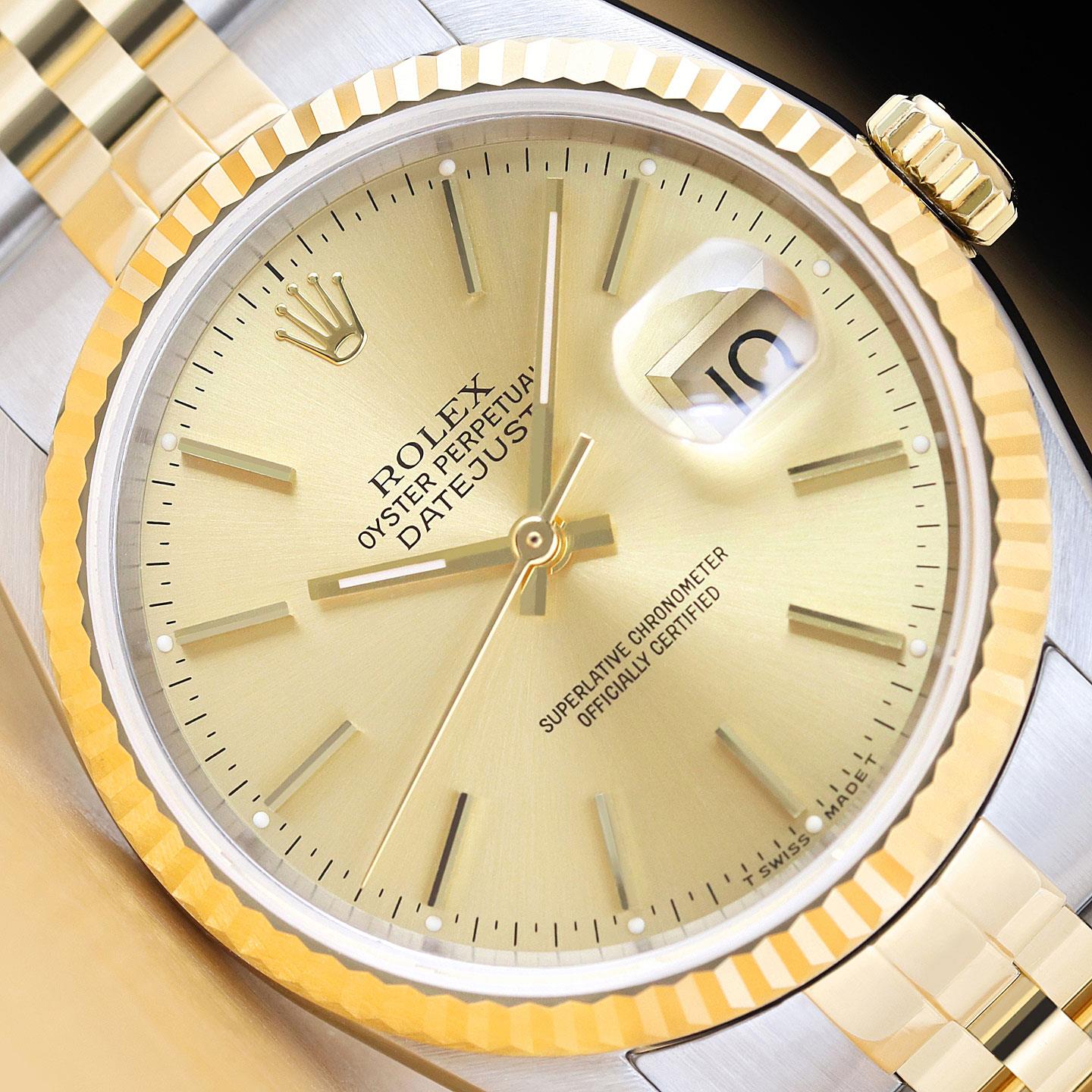 ROLEX MENS DATEJUST 16233 CHAMPAGNE DIAL 18K YELLOW GOLD STAINLESS STEEL WATCH
