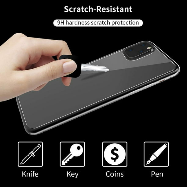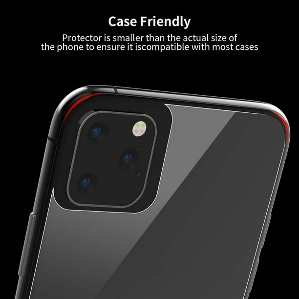 Specially designed with precise cutouts. Covers the reverse of your phone with fortified glass which gives full protection. Up to 9H hardness which can effectively protect your iPhone 11 Pro Max from unwanted scuffs and scratches by knives, keys, and some other hard substances. Coated with hydrophobic and oleophobic clear layers, the glass protects against sweat and oil residue from fingerprints, keeping your phone screen pristine all day long. Case-friendly - Specially designed to be smaller to fit most of the cases. Use your favorite case and keep your screen protected at the same time.Anti-Scratch/Shatter/Fingerprint.