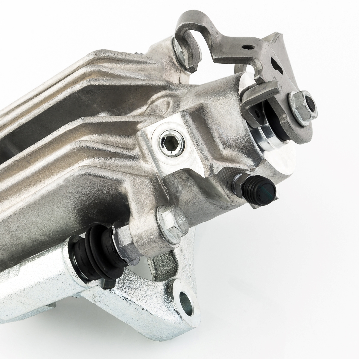• 1x Bremssattelgehäuse inkl. Bremsträger mit Führungsbolzen
