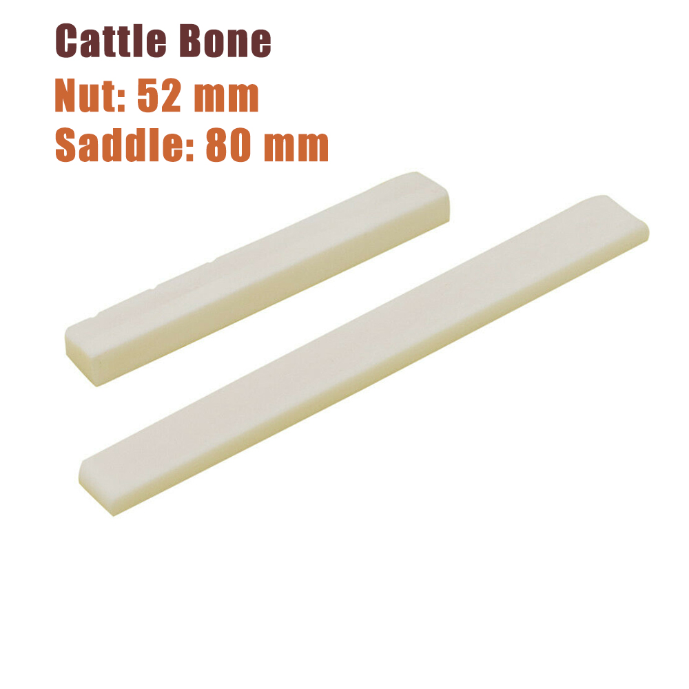 White Bone Bridge Saddle 80mm Slotted Nut 52mm Set for Acoustic Classical Guitar