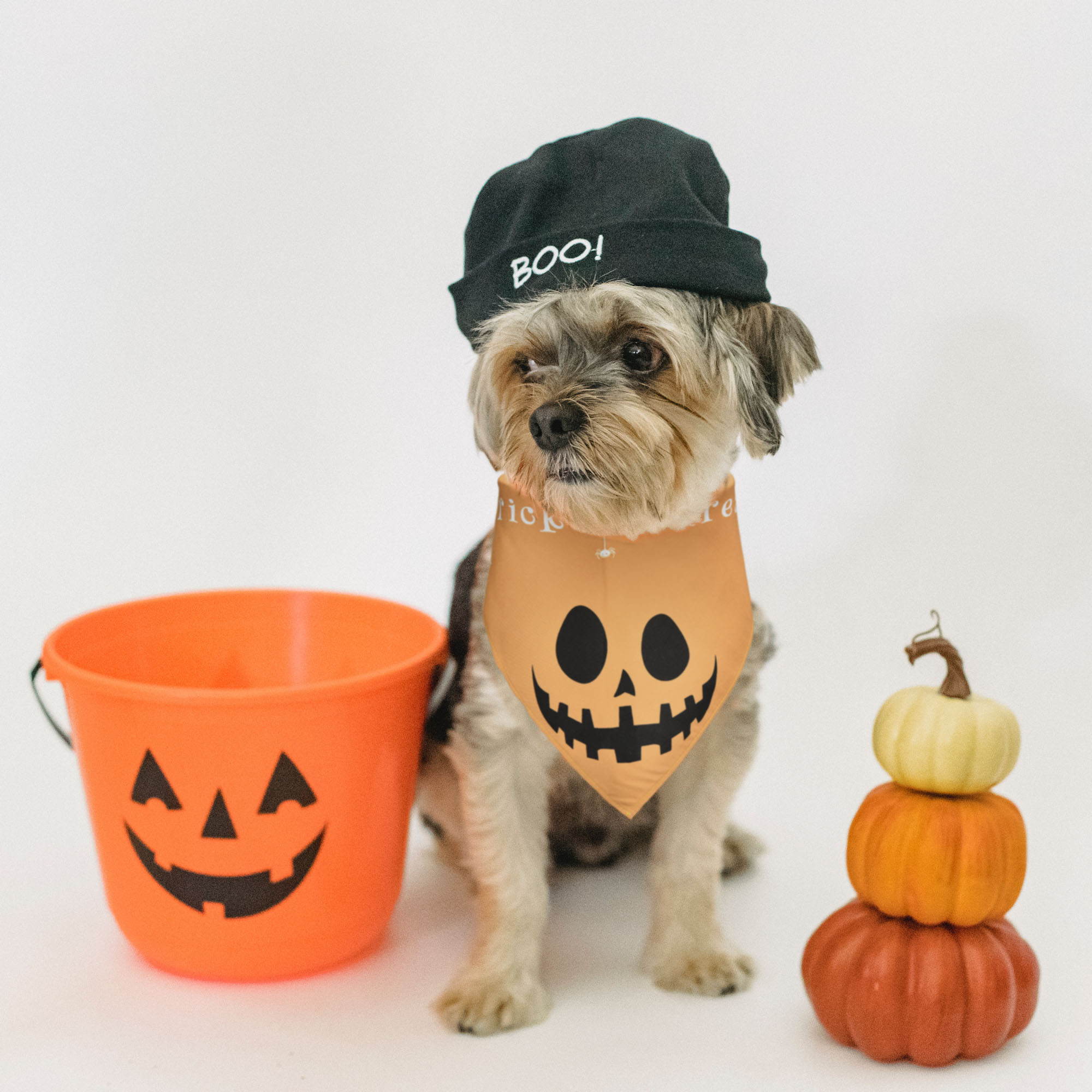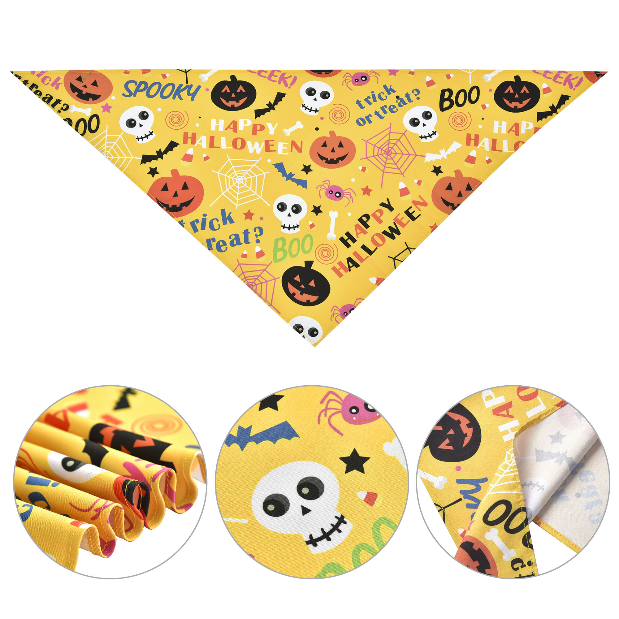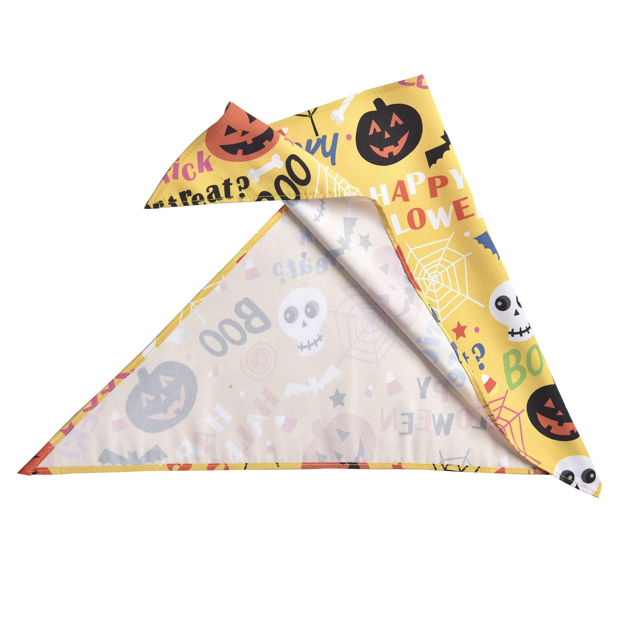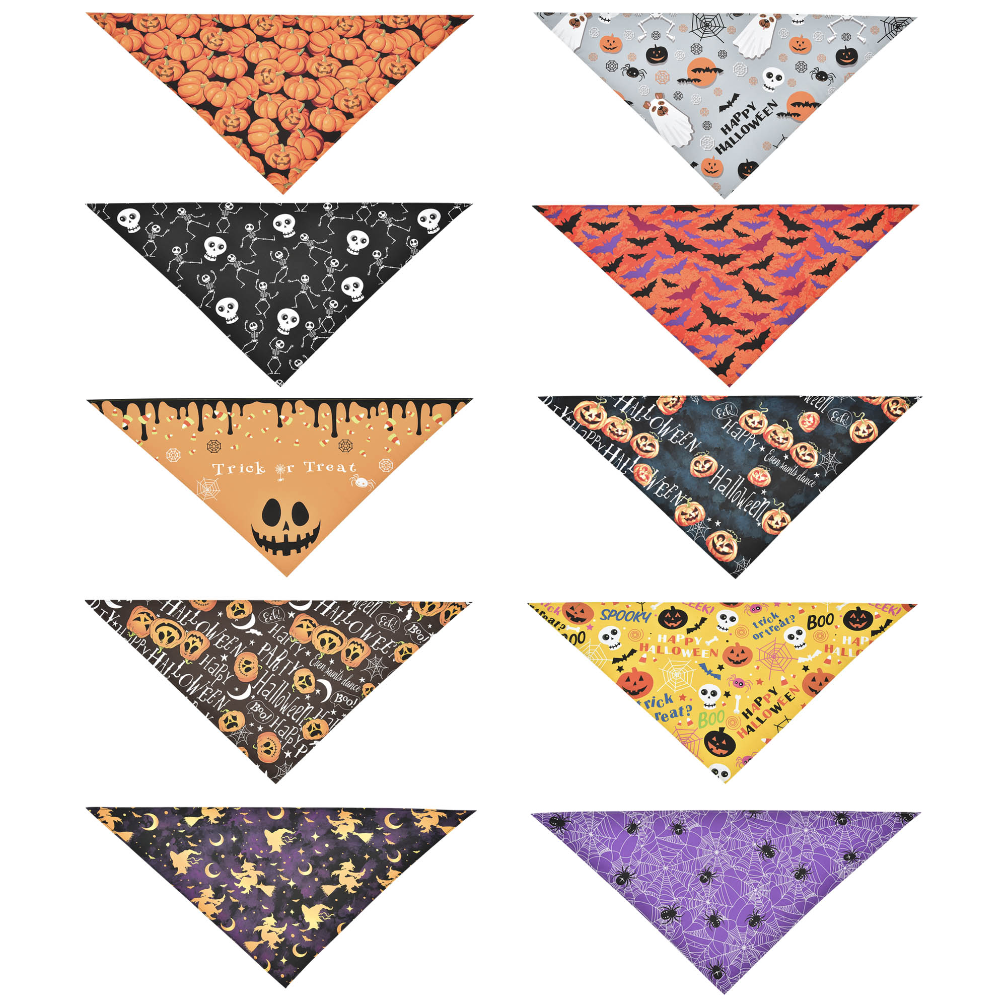 - Full Set - This set of Halloween Triangle Dog Bandanas consists of 10 pieces of Halloween theme scarves with pumpkin, ghost, skeleton, bat and spider web patterns in a cute and quirky design which is eye-catching, perfect for dressing up your dog or pet and enhancing their personality during parties, carnivals or celebrations