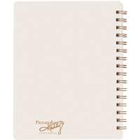A double-sided spiral notebook featuring a metallic foil message saying: