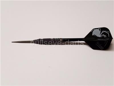A rough black oxide coating is applied to the point to increase friction and prevent softly thrown darts from falling out.