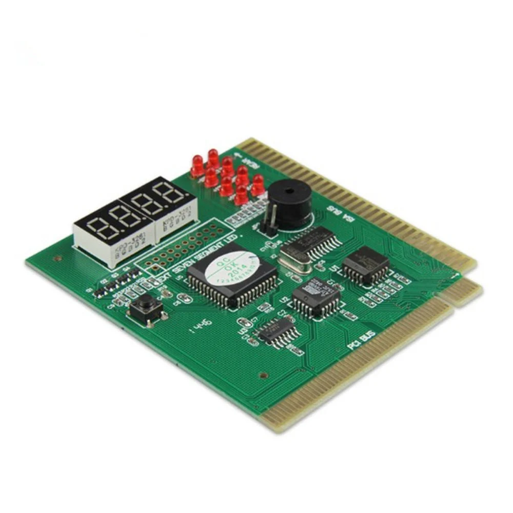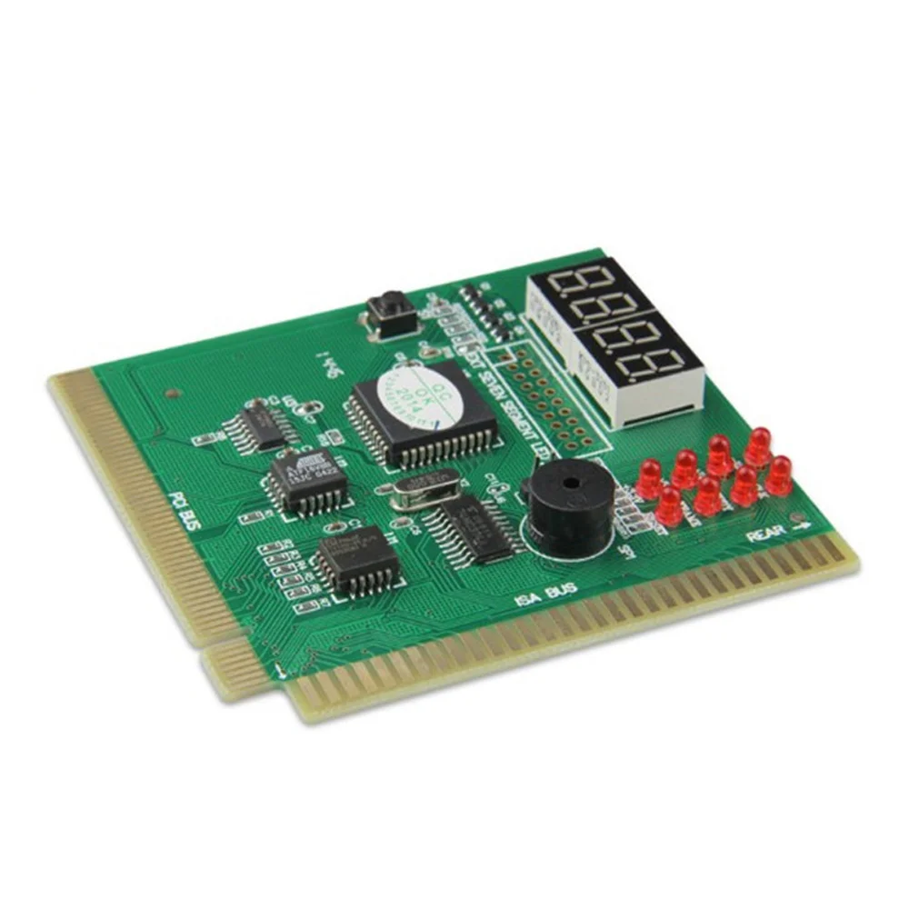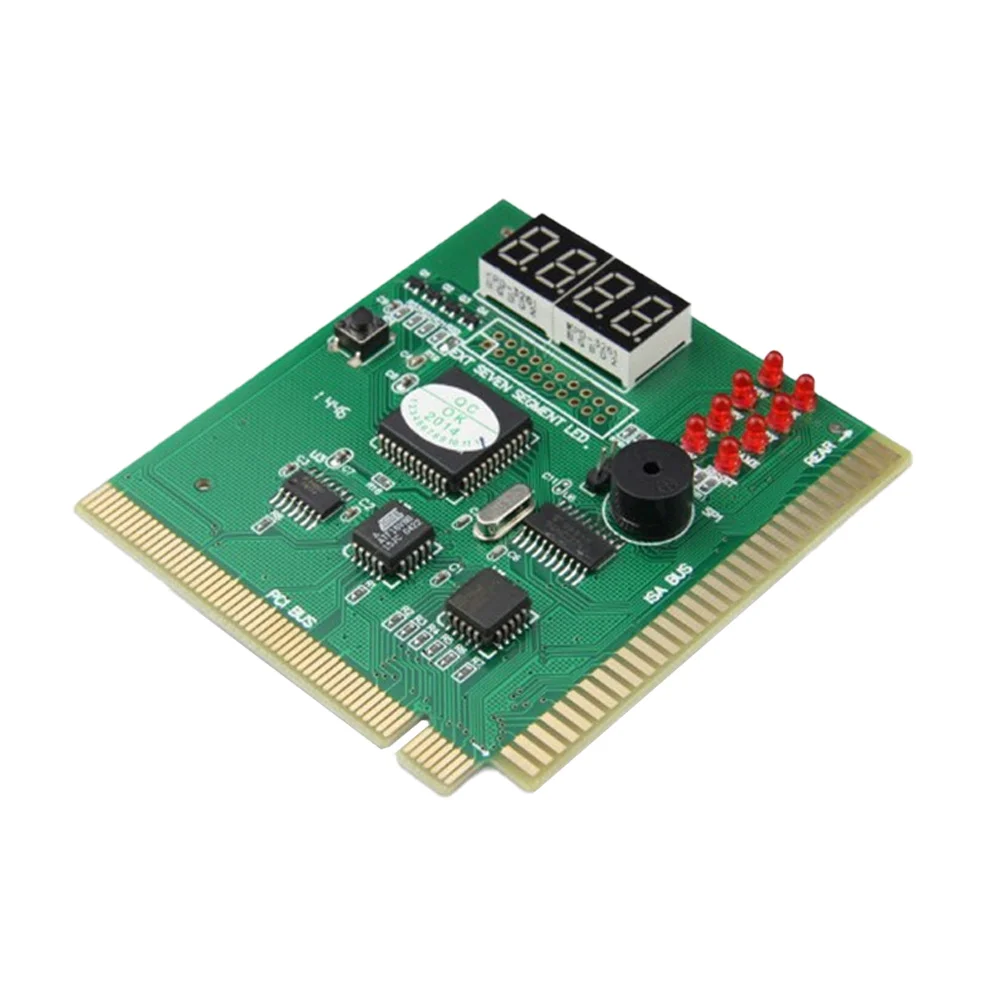 new and high quality Both ISA bus and PCI bus are suitable Determine defects by difference sounds coding with build-in speaker It can diagnosis the motherboard signal which show the problem of CPU, Memory, video card, etc The POST code display is made up of a dual, dot matrix hexadecimal read-out that display's Power On Self Test (POST) status codes Support the power source working indicator -- +5V, +12V, +3.3V and 12V (When indicator LED is on to indicate its respective power is fine, otherwise to indicate its respective power is failure.) Fully compatible with any kind motherboards which has the PCI and ISA bus slot Self checking remote display function Dual POST code display - User can readout the POST at PCB component and solder side. It is easy to view the POST code when user plugs the POST card in computer system Recall previous post codes at the touch of a button Color: As the picture Size: Approx. 8.9 x 8.3 x 0.2cm (L*W*H)