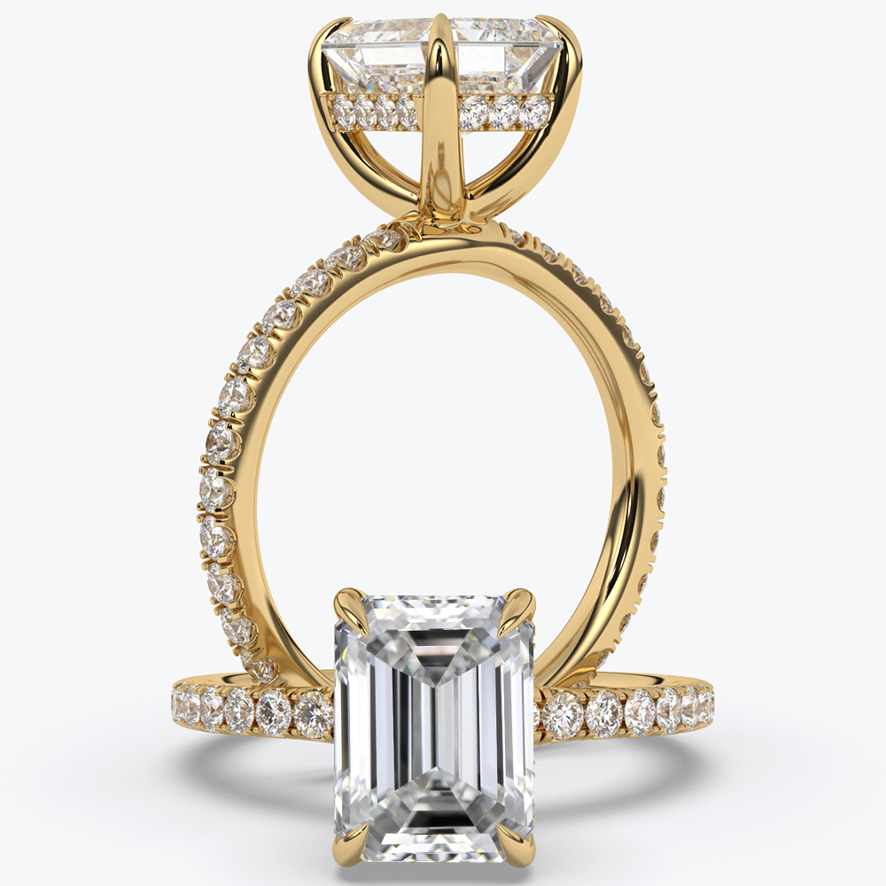 French Pave Hidden Halo Emerald Semi Mount Engagement Ring Gold Y14k 0.6Ct
