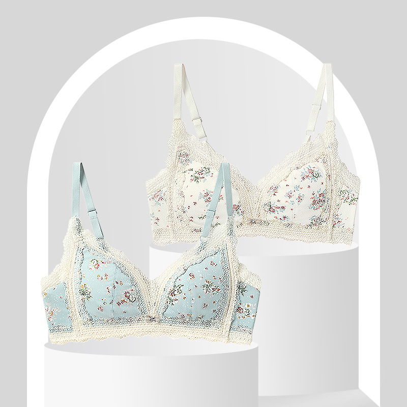 Lady Lace Non-wired Bra Padded Push Up Floral Ruffle Bow Lingerie Underwear Sexy