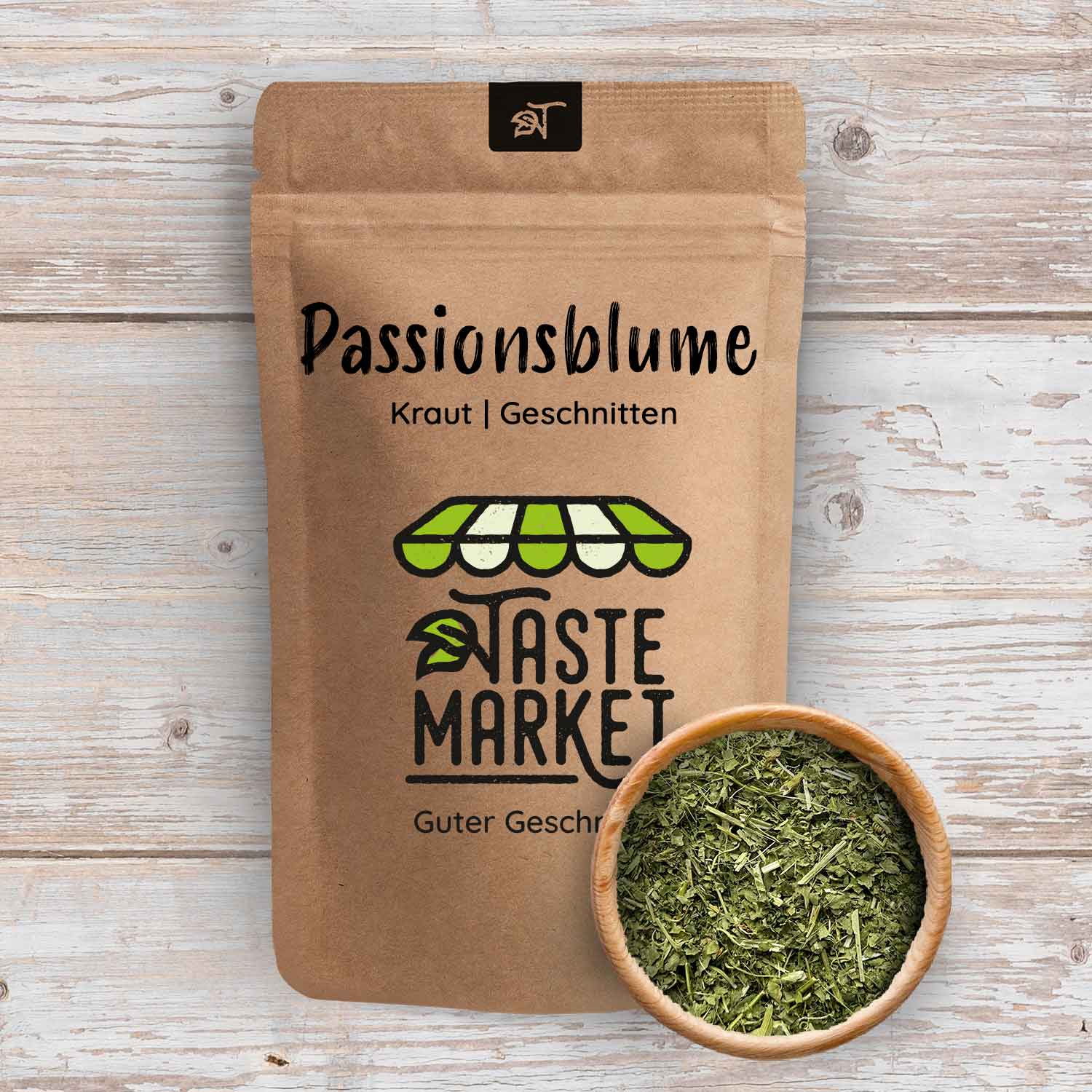 Die Passionsblume ist bei uns zulande eine beliebte Zierpflanze - sie kann aber mehr als nur schick aussehen! Unser TASTE MARKET Passionsblumenkraut ist frei von jeglichen Zusätzen und wird nach der Ernte schonend getrocknet und anschließend fein geschnitten. Man kann das Kraut für Tees, Limonaden, Liköre oder Marmeladen verwenden. Für die äußerliche Anwendung macht Passionsblumenkraut sich gut als Tinktur oder Sud.