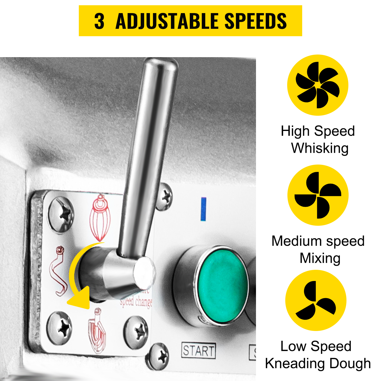 Equipped with a 450W/600W/750W/1100W motor, this device delivers consistent performance and offers three adjustable mixing speeds (105/180/408 RPM, 130/233/415 RPM) to meet your food preparation needs efficiently.
