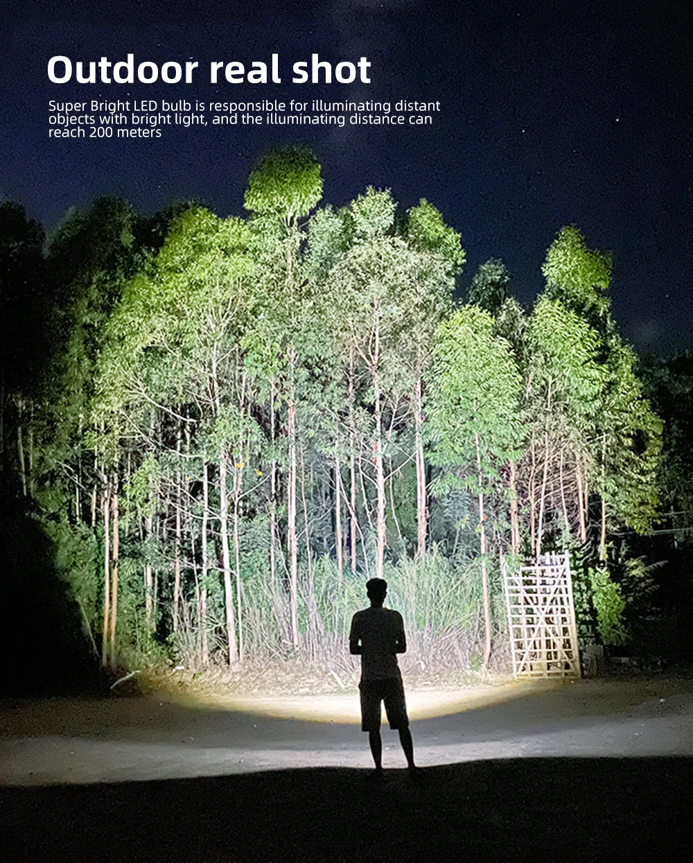6.Zoom function.Spotlight for long distance observation and floodlight for large area ilumination!Easily light up an entire room or focus on objects upto 1000 meters away!