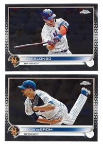 Here's an 2022 Topps Chrome of New York Mets stars Pete Alonso #209 & Jacob deGrom #125. Mint shape.