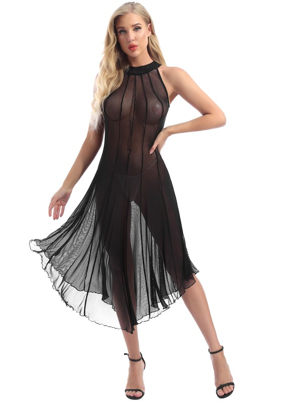 Womens Fishnet Babydoll T-shirt Tops See Through Bodystocking Lingerie Nightwear