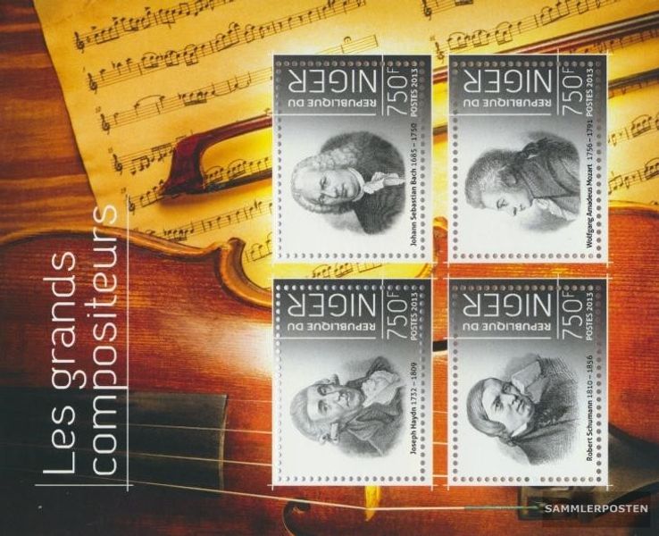 Francobolli Niger 2580-2583 Minifoglio (completa Edizione) MNH 2013 grande CompositoriProdotto: Francobolli Territorio: Niger Occasione dell'uscita: 2013 grande Compositori Titolo: 2580-2583 Minifoglio (completa Edizione) numeri di catalogo: 2580 Annata: 2013 Condition: MNH