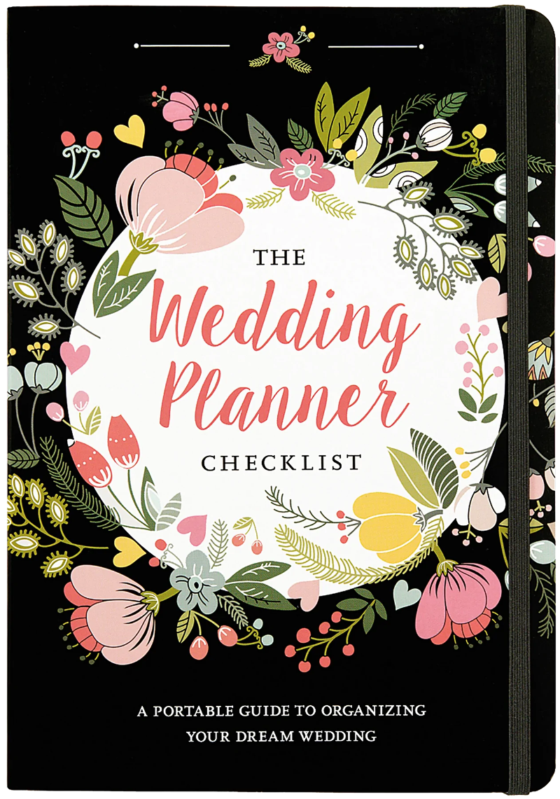 The Wedding Planner Checklist Planning a wedding can be a challenging affair. This purse-sized guided notebook will make life easier for the bride on-the-go! Concise fill-in lists and charts enable you to compile the essential information you need to stay on track as you plan pre-wedding gatherings, the big day itself, and beyond. Guided note-taking pages help organize vendor and venue information. Convenient inside back cover pocket holds notes, receipts, business cards, and more. Elastic band closure attached to the back cover keeps your place or keeps your planner closed. Sturdy board covers support writing on the go, no matter where inspiration about the big day strikes you! Floral cover design features gold foil detailing. Lightweight, take-with-you organizer measures 5-3/4'' wide x 8-1/4''. 80 pages.