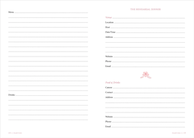 Guided note-taking pages help organize vendor and venue information.