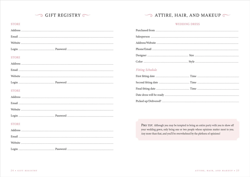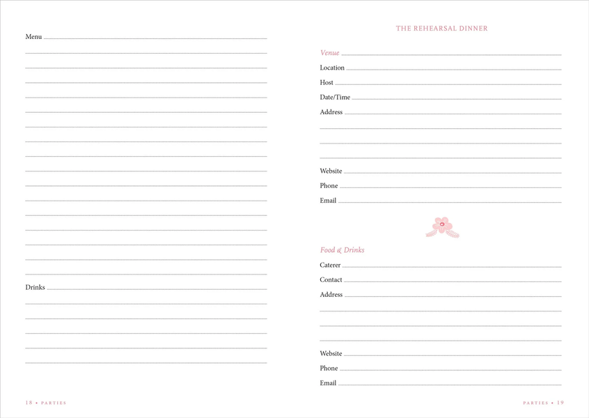 Concise fill-in lists and charts enable you to compile the essential information you need to stay on track as you plan pre-wedding gatherings, the big day itself, and beyond.