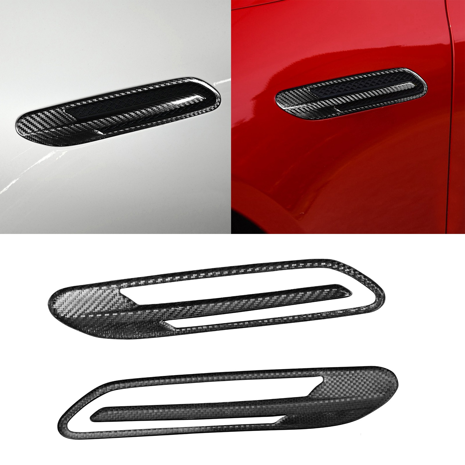 2PCS Carbon Fiber Side Fender Air Vent Cover, Self-adhesive glue tape