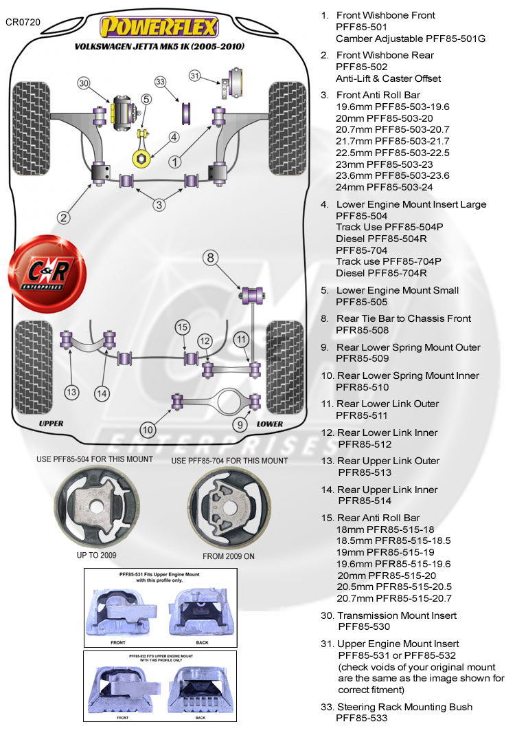 Um die richtige(n) Powerflex-Buchse(n) zu identifizieren, die Sie benötigen, sehen Sie sich bitte das Positionsdiagramm weiter unten in der Auflistung an.
