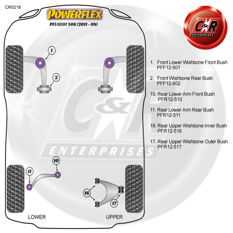 Powerflex hintere obere Querlenker-Innenbuchsen für: Peugeot 508 HYBRID4 4X4 RXH (ab 2011)