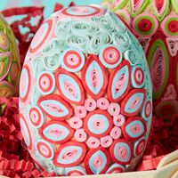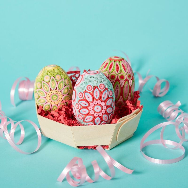 * Set of three quilled paper eggs.