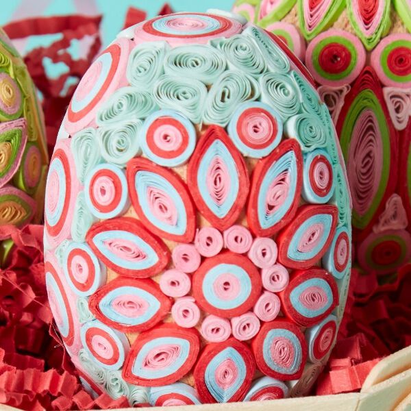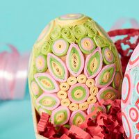 * Set of three quilled paper eggs. * Festive tabletop easter decor. * Paper quilled over a wooden core. * Each egg measures 1.5" length, 1.5" width, and 2" height. * Pink, yellow, red, green and blue colors. * Quilling is the art of using strips of paper that are rolled, shaped, and glued together. * Made by a women's artisan co-operative in Hanoi, Vietnam. ------------------------- Quilling is the art of using strips of paper that are rolled, shaped, and glued together to create decorative designs. Each product is finely crafted by hand by an artisan co-operative run by women in Hanoi, Vietnam. The co-operative provides employment and craft training to the women artisans. Our products are made using recycled paper. These products are beautiful for your home, for the society and for the planet.