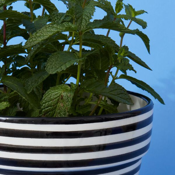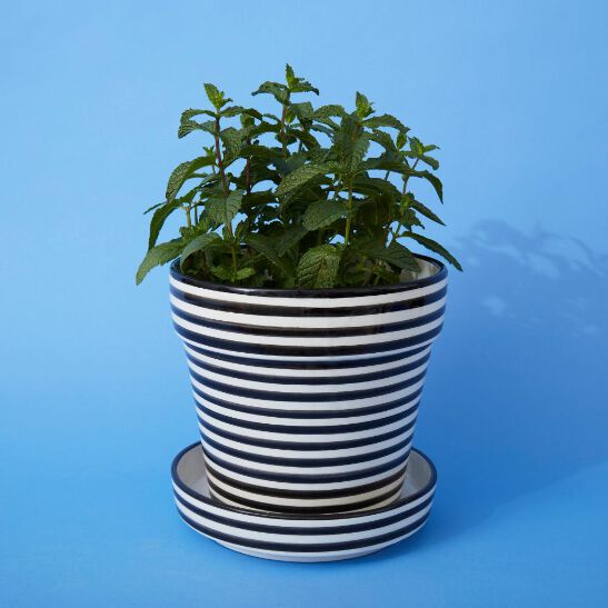 * Large ceramic planter * Black colored stripes pattern on white * 8" diameter, 9" height * Microwave and dishwasher safe * Handmade pottery * Traditional hand painted moroccan design *Black and white colors * Made in Morocco --------------------------------- Morocco is known for its vibrant and colorful hand painted pottery. Ceramics are made in different shapes, sizes and for a variety of purposes. Fez, Meknes and Safi are the main centers of moroccan pottery. Ceramics are made using red clay, an abundant source in Morocco. The availability of clay has made pottery, an integral part of Moroccan culture. All ceramics are made from locally available clay, and fired in a wooden kiln. The ceramics are then hand painted with naturally occurring colors in traditional arabesque patterns. The final process includes glazing the ceramics to seal the beautiful colors and patterns. Our collection Moroccan Ceramique stands out for beautiful functional pieces to serve and eat. This collection will bring a piece of Morocco into your home.