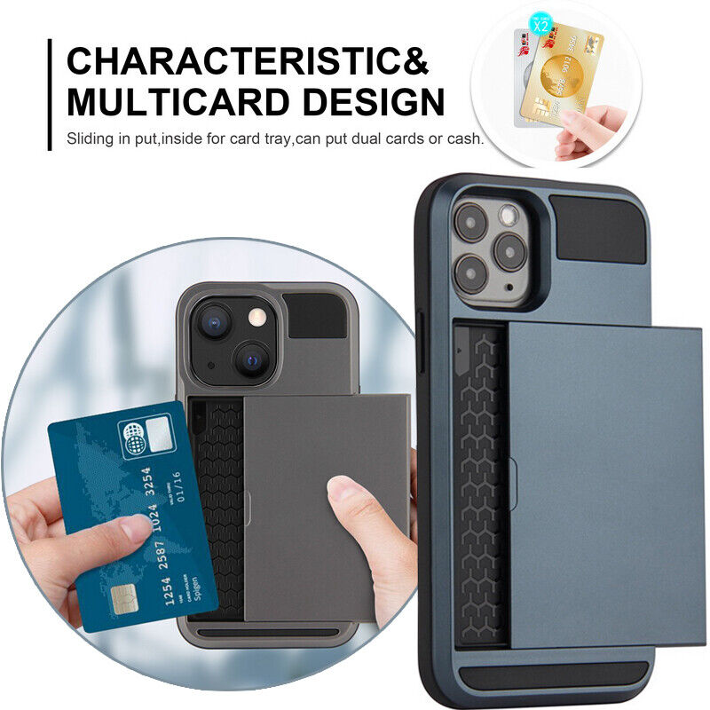 For iPhone 16 15 14 13 12 11 Pro Max XS XR Shockproof Cover Wallet Card Holder Case