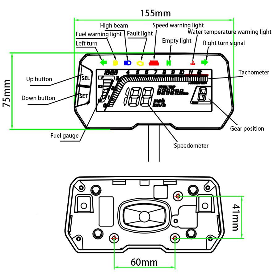 Multi-functions LCD Motorcycle Speedometer Odometer RPM Speed Fuel Gauge Kph Mph
