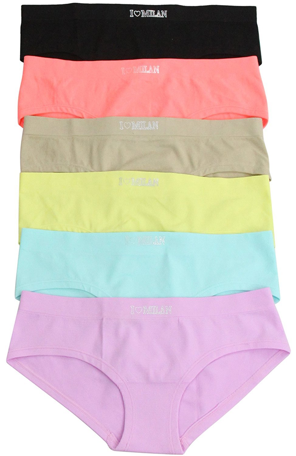 • 🌸 Featuring cute and stylish graphic prints of microfiber stretch bikini pantie girls of all ages will love. These great quality seamless underwear includes 6 panty underwear of different colors with a decal on the front with every purchase. Great for everyday wear or to sleep in. Moisture wicking microfiber fabric will keep them cool and dry all day long. Does not shrink after wash. Pull on closure. Elastic waist and leg openings. Long lasting durable constriction.