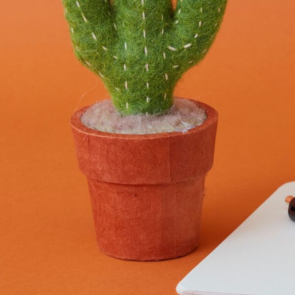●Felt and paper saguro cactus pot. Pot is made from locally produce lokta paper.