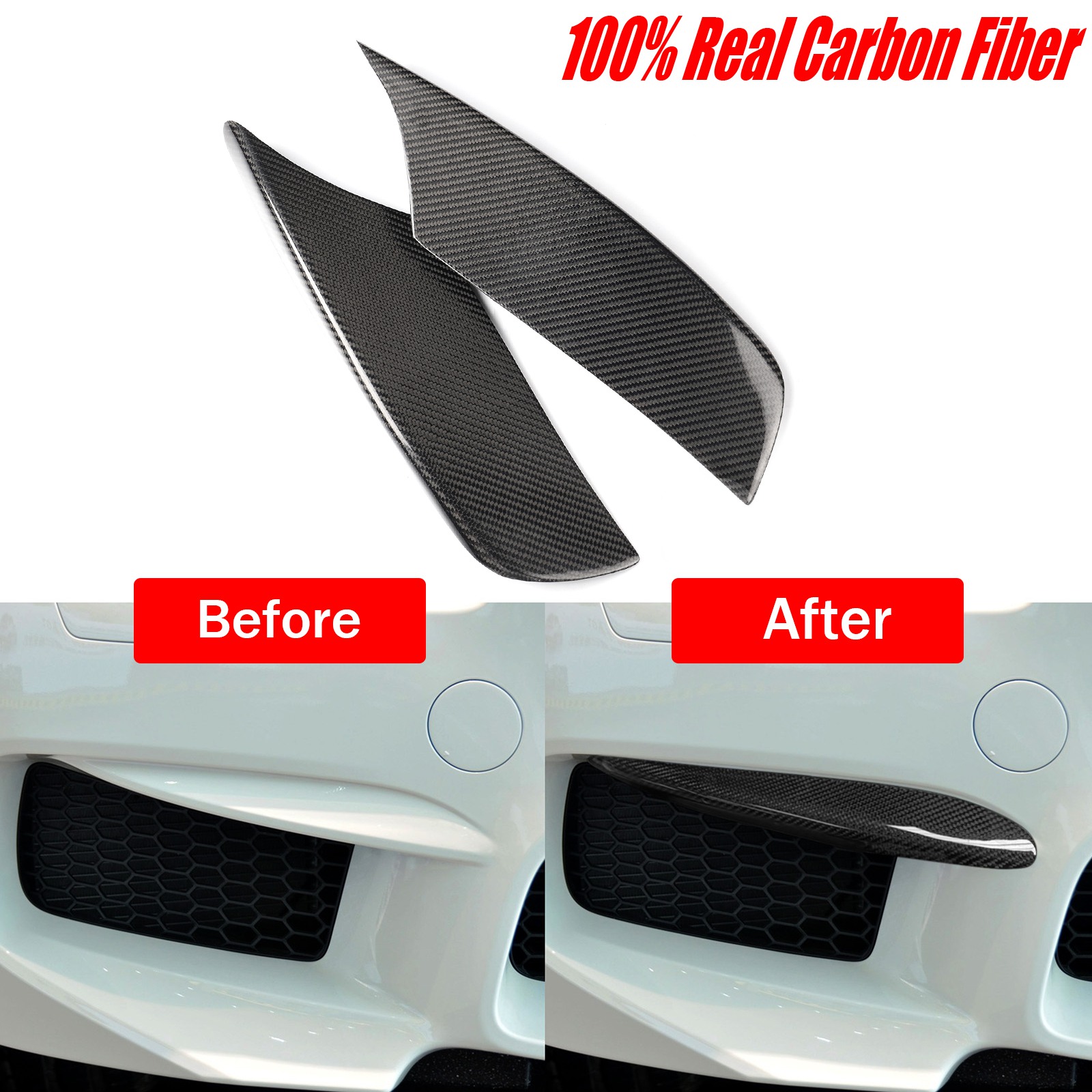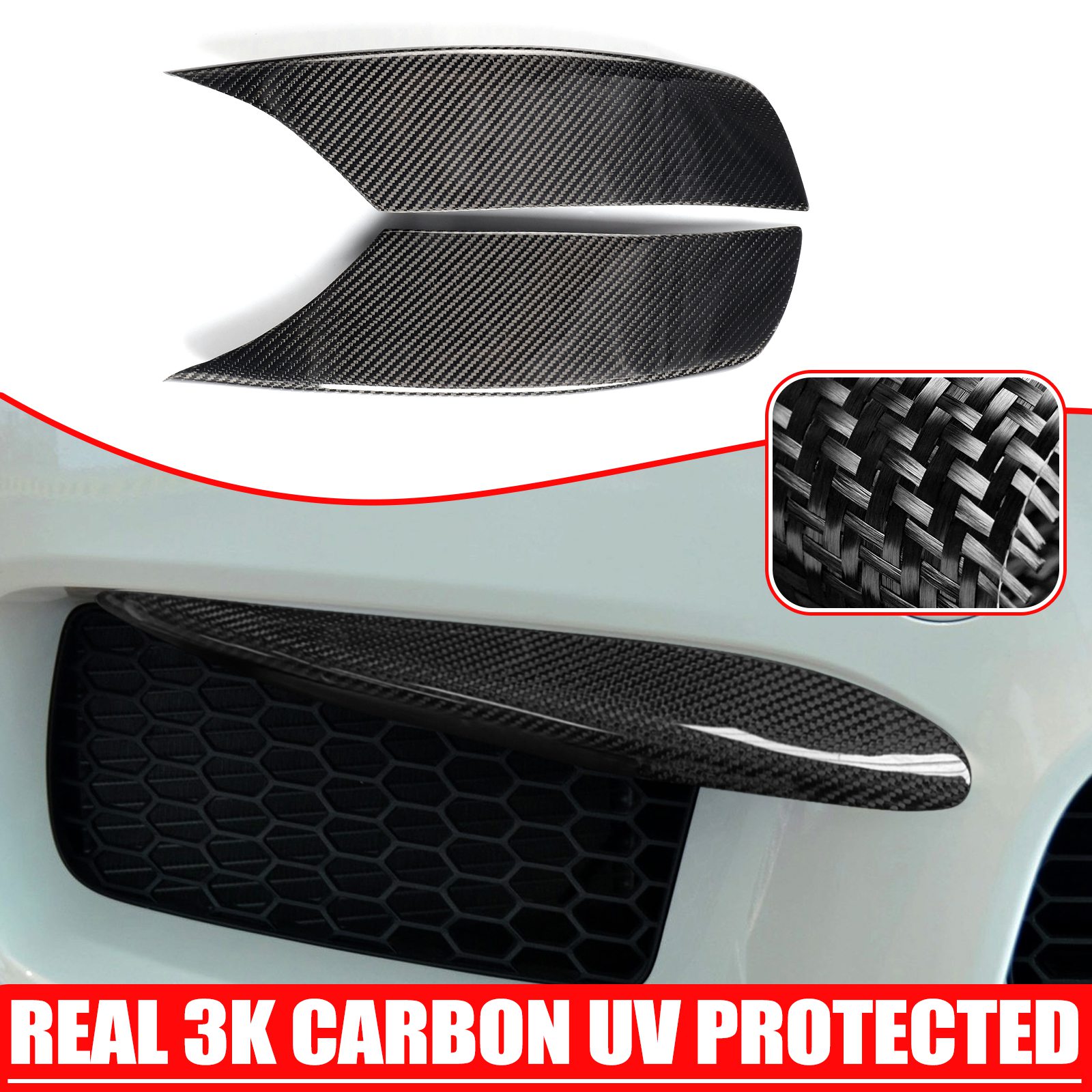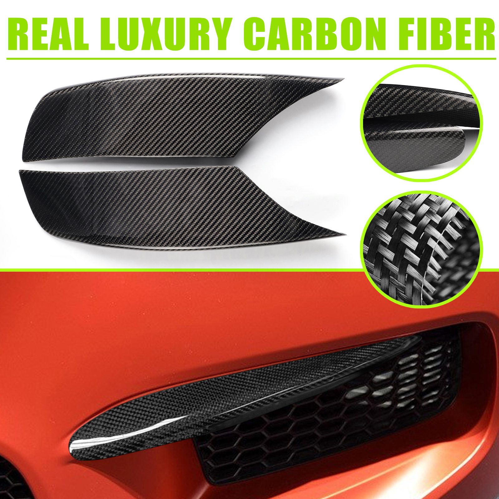2PCS Carbon Fiber Front Bumper EyeLid Covers