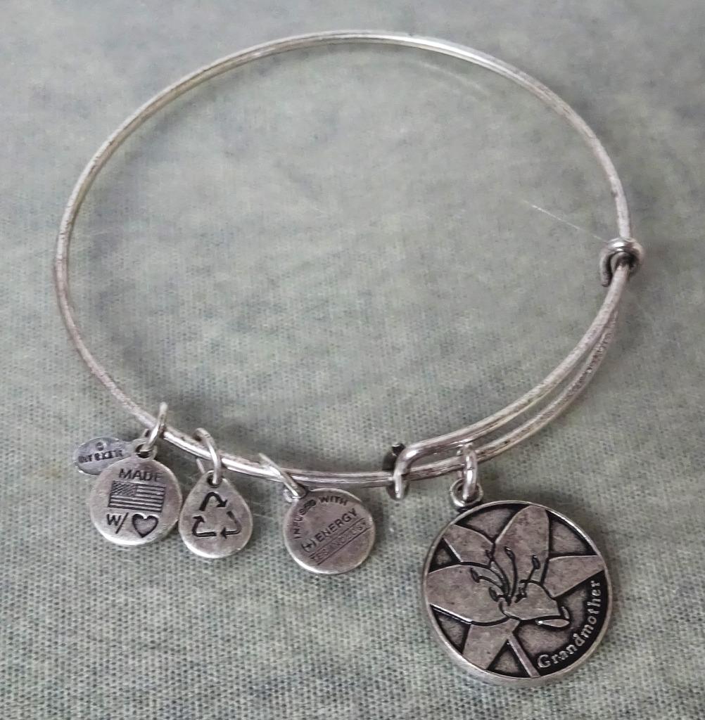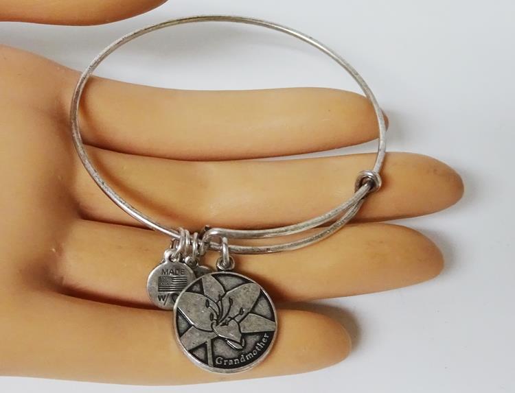 Signed Alex and Ani Vintage 2014 GRANDMOTHER Silver tone Bangle BraceletFor your Consideration is an Alex and Ani Bracelet I purchased at a Central Ohio Consignment Auction.This Bracelet Measures About 2 5/8" x 2 1/2" Across the OpeningSee Images for Additional Details ~ The Item Shown is The Exact Item You Will Receive