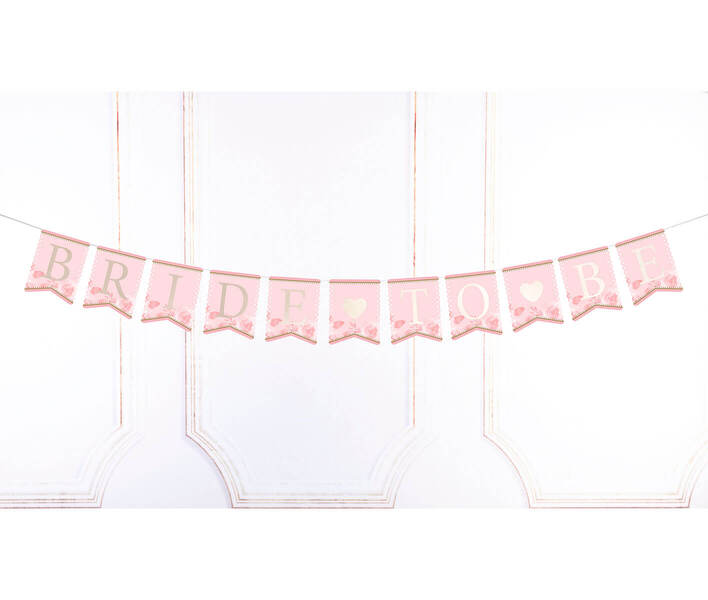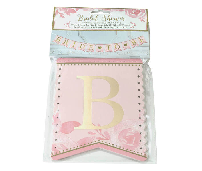 This pink and gold Bride-To-Be bunting is the perfect decoration for a bridal shower or bachelorette party. Bunting measures 78 inches long.