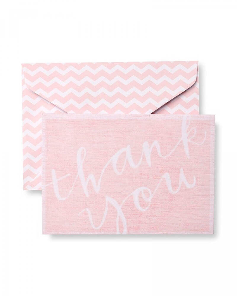 These pink painterly thank you cards are a beautiful, modern way to express your gratitude. Chevron envelopes in pastel pink make a unique, happy statement.