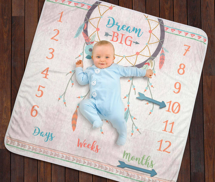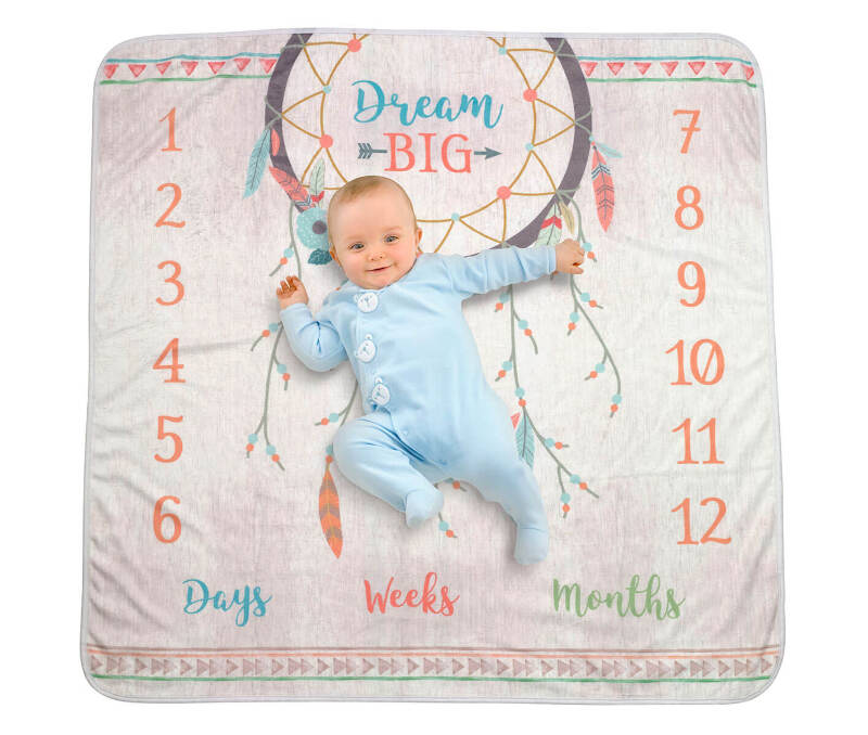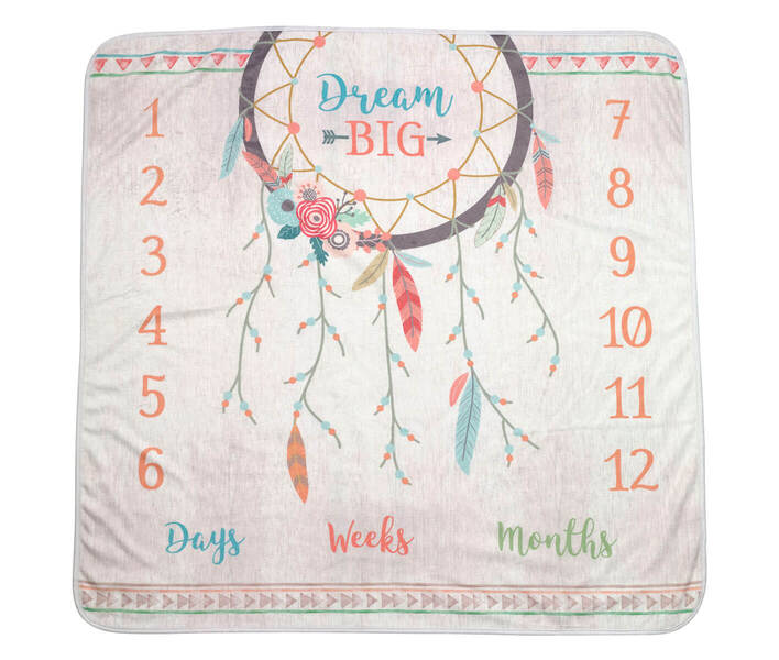 This boho baby blanket measures 41 x 39 inches and is perfect for the nursery or travel. The blanket is 100% polyester and is lavishly soft. This delightful blanket will bring your baby joy for years to come.