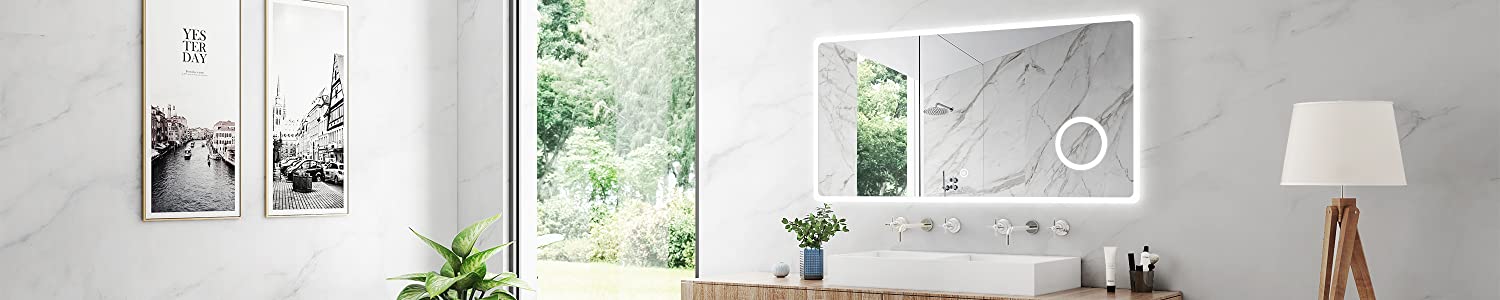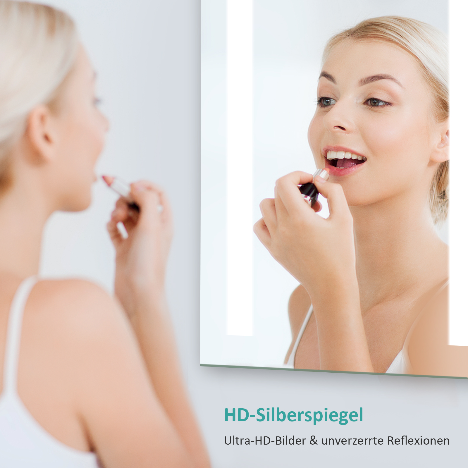 💡【Antibeschlag-Funktion】Dieser LED beleuchtete Bad Spiegel verfügt über eine Antibeschlag-Funktion auf der Spiegelfläche(nicht des ganzen Spiegels).Eine moderne Heizmatte garantiert klare Spiegelung.