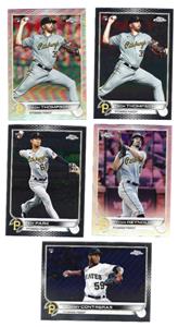 Here's a lot of 2022 Topps Chrome cards of Pittsburgh Pirates stars. Included will be...Zach Thompson #32 RC (base and refractor), Hoy Park #32 RC, Roansy Contreras #53 RC, Bryan Reynolds #155 refractor. Mint shape.