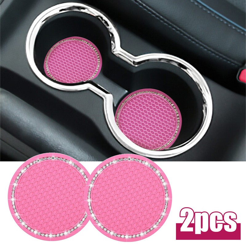 2x Pink Car Cup Holder Insert Rhinestone Coaster Car Interior Accessories Trim