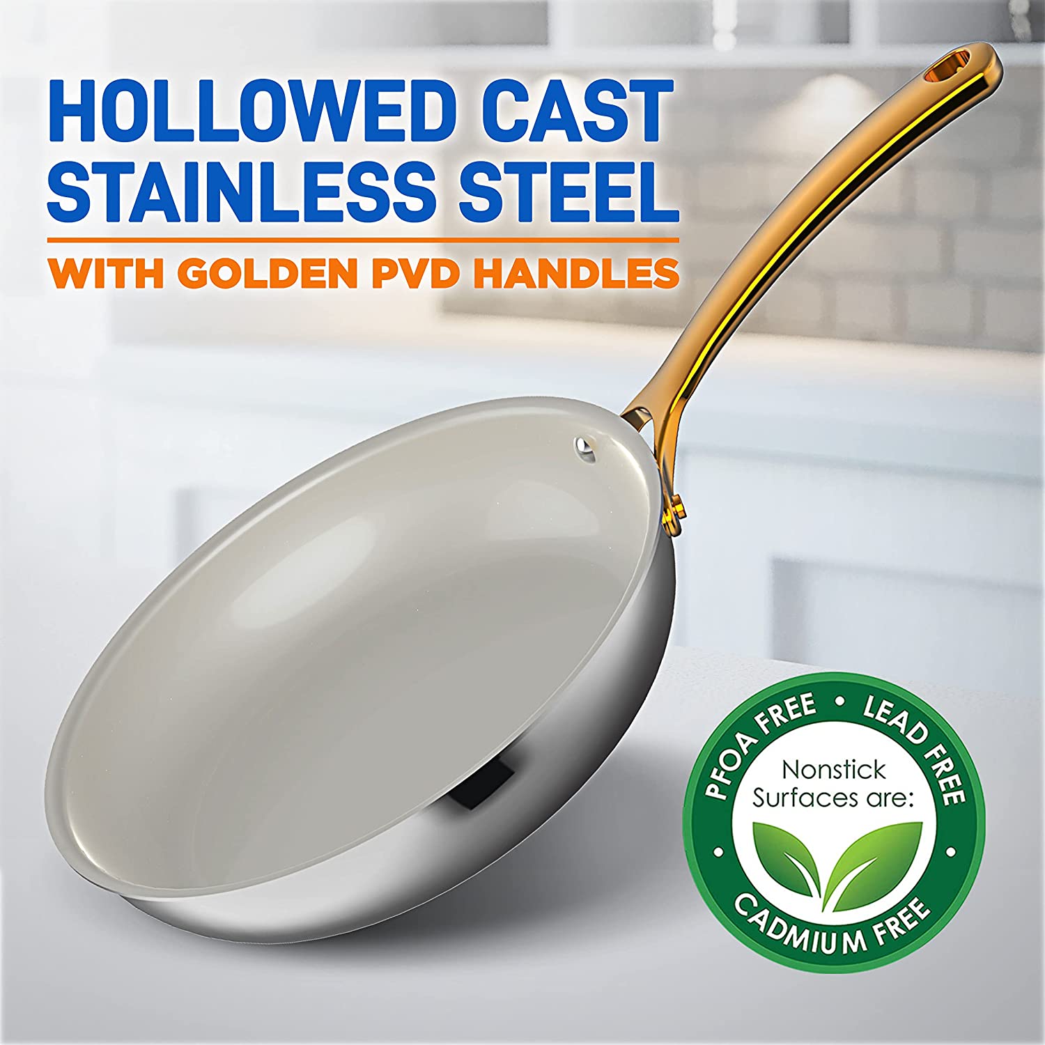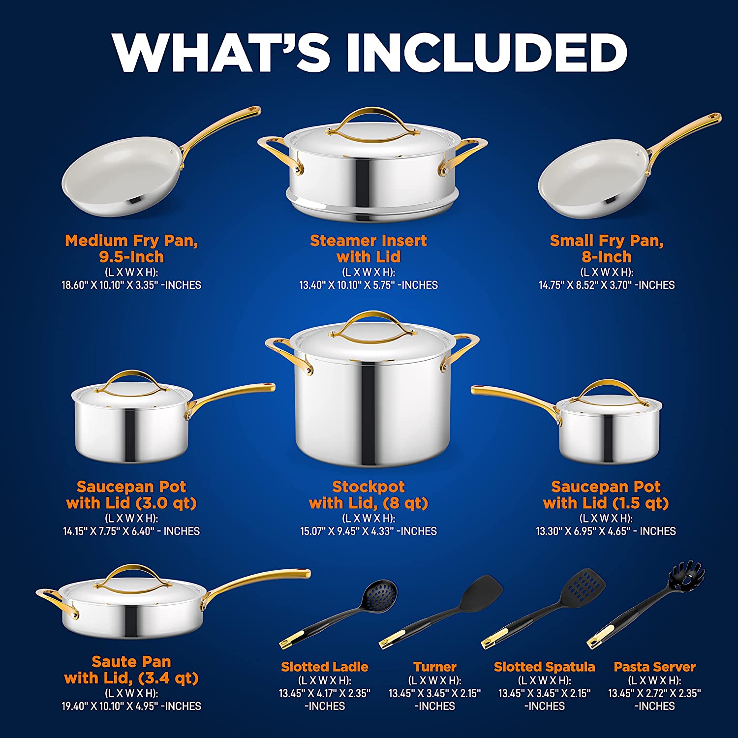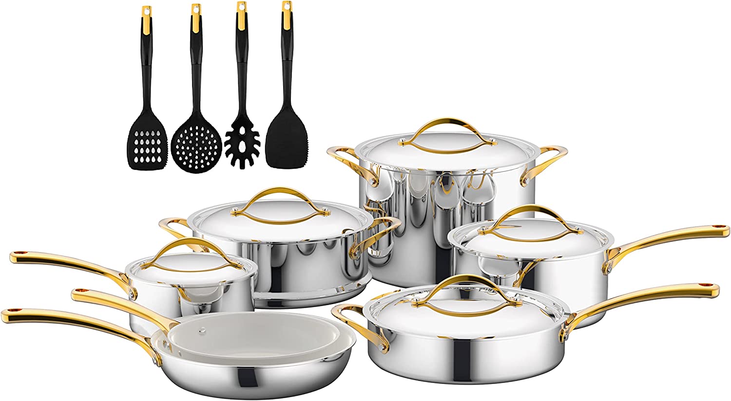 Kitchenware Pots & Pans Set - Clad Kitchen Cookware with Nylon Utensils, Fry Pan Interior Coated with Prestige Ceramic Non-Stick Coating (16-Piece Set)