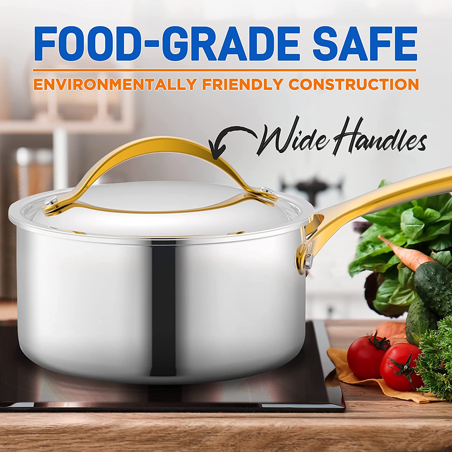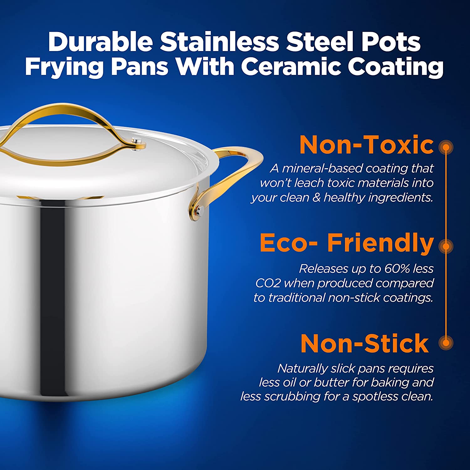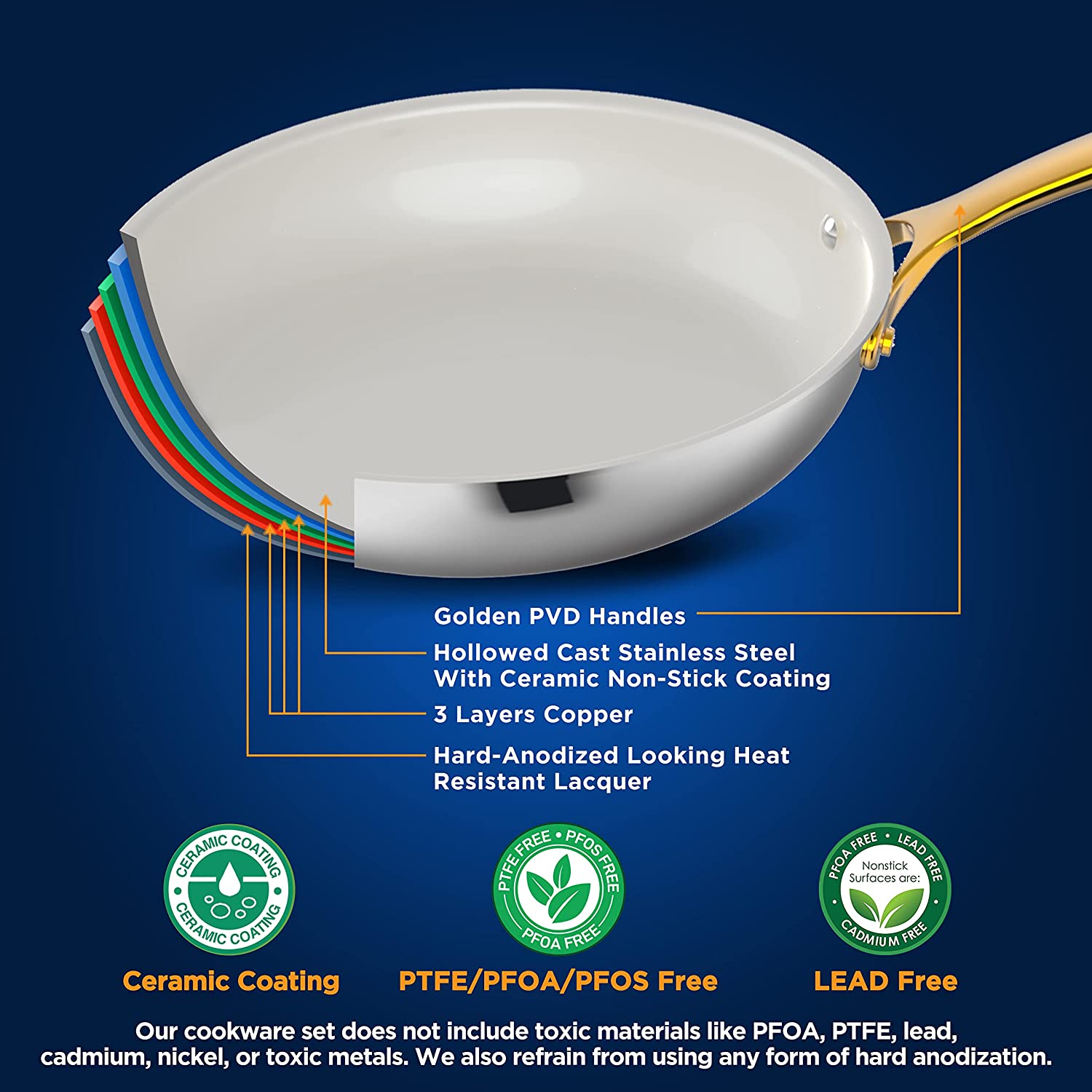 Kitchenware Pots & Pans Set - 16-Piece Set Clad Kitchen Cookware with Nylon Utensils, Fry Pan Interior Coated with Prestige Ceramic Non-Stick Coating, Stylish Kitchen Cookware