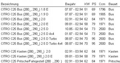 Schlüsselnummern aus dem KFZ Schein die Kompatibilität.
