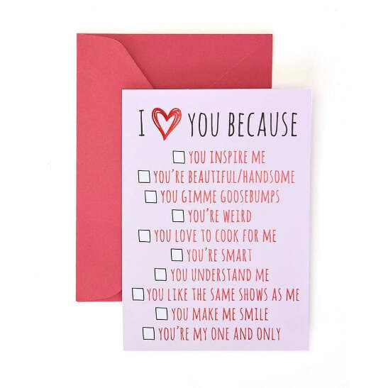 Give your loved one this special card on Valentine's Day to show just how much they mean to you! Features a check off list so you can let them know why you love them so on the front