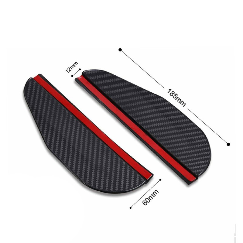 Features: *2Pcs Car Rear View Mirror Rain Shield Carbon Fiber Look Visor Sun Shade *100% brand new and high quality *Helps prevent rain, so you get a clearer rear view and a safer driving experience *In fine weather, can reduce the dust attached to the mirror *Easy to install on both sides of the car's rearview mirror *Suitable for most models Specifications: *Material: Soft PVC *Color: Black (carbon fiber look) *Size: 185 x 60mm / 7.28 x 2.36 inches (Approx) Package Contents: 2*Rear View Mirror Rain Shield Note: 1.