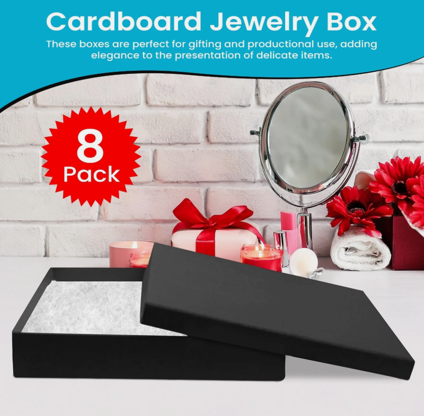 - This set includes: 8 jewelry gift boxes with removable cotton pads. It is ideal for gifting various types of jewelry such as rings, bracelets, or necklaces. The removable pad ensures your items remain safe and protected during storage.