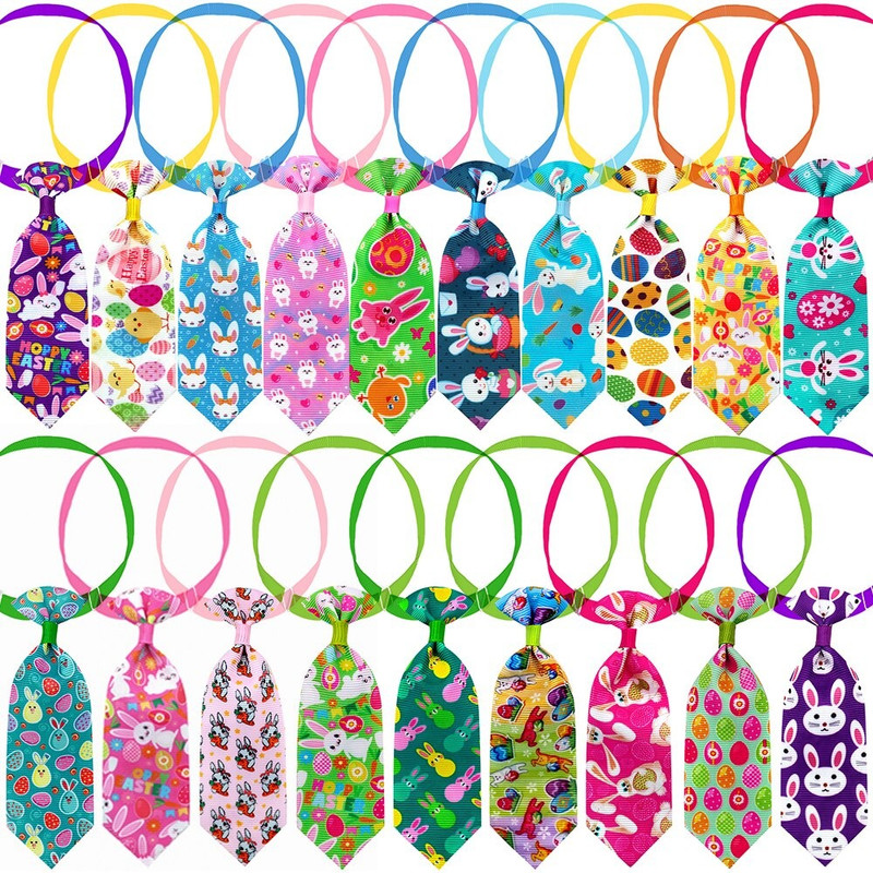 Pet tie collar set: abundant 100 pieces of easter day color rabbit designs bows included in the package,