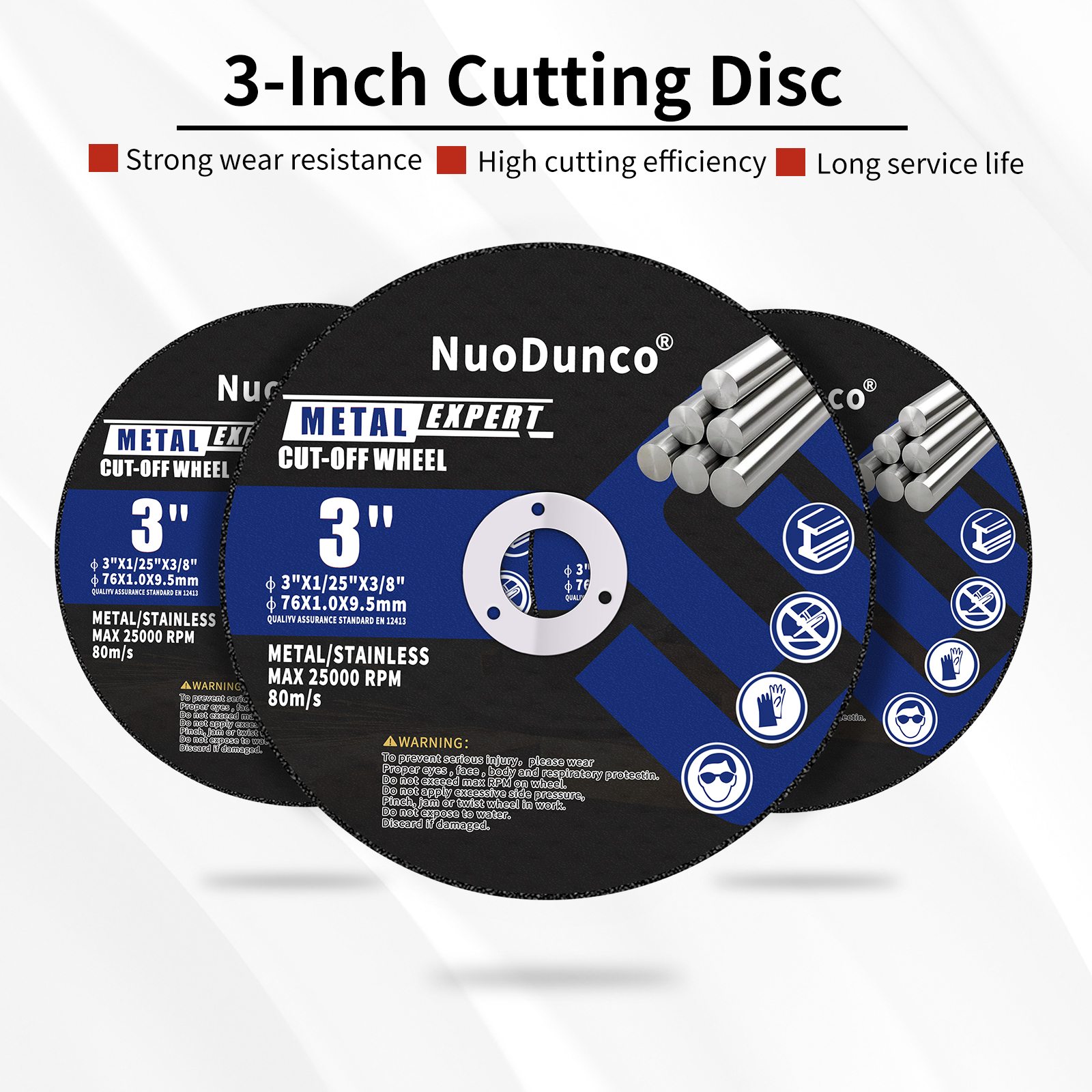 ·Please wear suitable protective equipment during use 3inch cutting wheels and do not exceed the specified maximum speed.