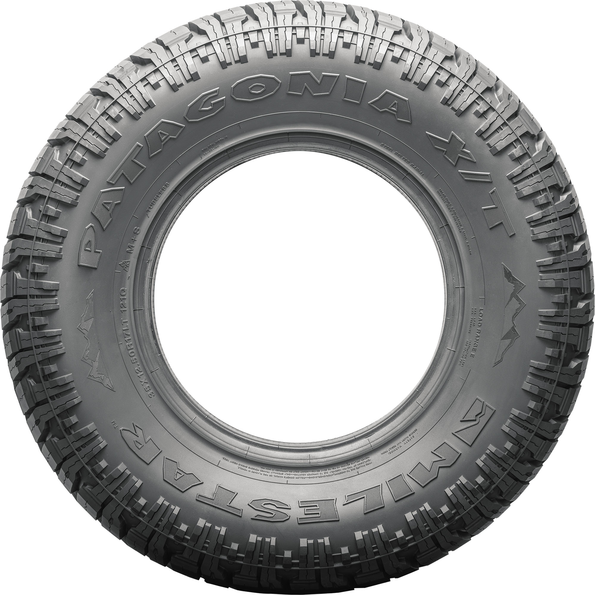 An extreme terrain tire, Milestar's Patagonia X/T is built to help drivers of light trucks and SUVs conquer on- and off-road obstacles. Featuring a cut and chip resistant rubber compound and a 3-ply sidewall for additional strength and durability, the Patagonia X/T's alternating open shoulders enhance traction on any terrain while an optimized pitch sequence creates a quiet ride for drivers and passengers.