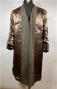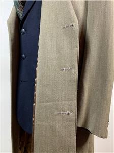 On offer here is a tan twill top coat with a full lining, completely finished except for the front buttons. As you can see, the front button holes are still sewn shut.