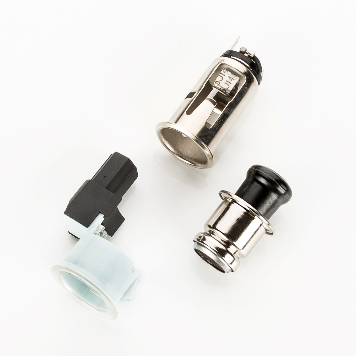 • Zigarettenanzünder mit Einbausteckdose und Steckanschluss (2 Pins) 12V